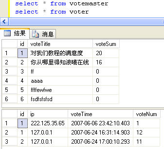一个为投票主表,一个为投票者信息表~记录投票人IP及对应投票类型,左右连接实际说是我们联合查询的结果以哪个表为准~