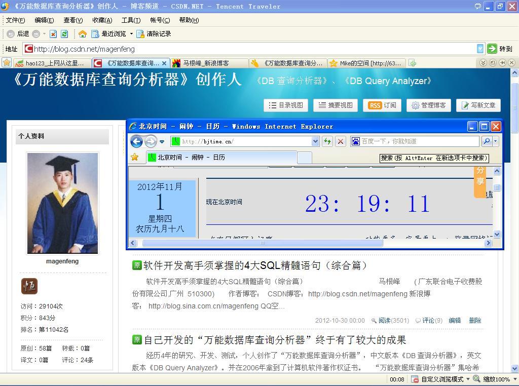 今天感觉到非常高兴,自己撰写的博文软件开发高手须掌握的4SQL精髓语句系列中的《软件开发高手须掌握的4SQL精髓语句(综合篇)》,1030发布我的CSDN博客上,截止到今晚,不到3天的时间,已经被浏览3500多次了,在此,本人深深感谢博友们的厚爱,希望大家能够通过交流来获得提高。
