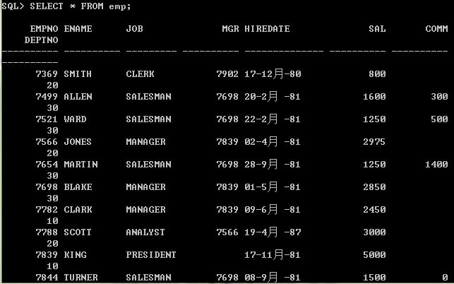 SELECT * FROM emp;2.用sqlplus可以对环境进行设置: