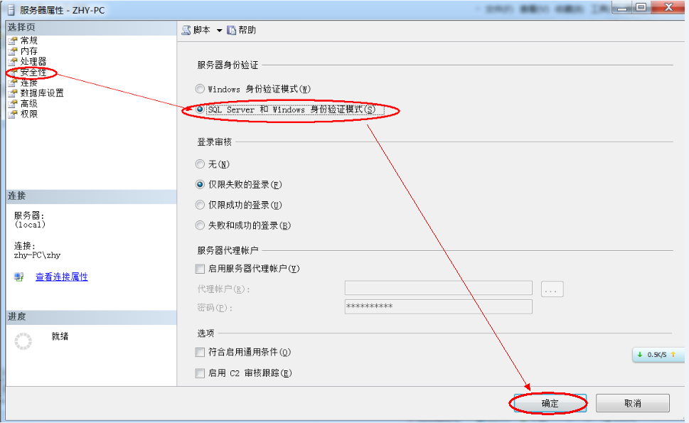 如何更改SQL Server2008身份验证模式