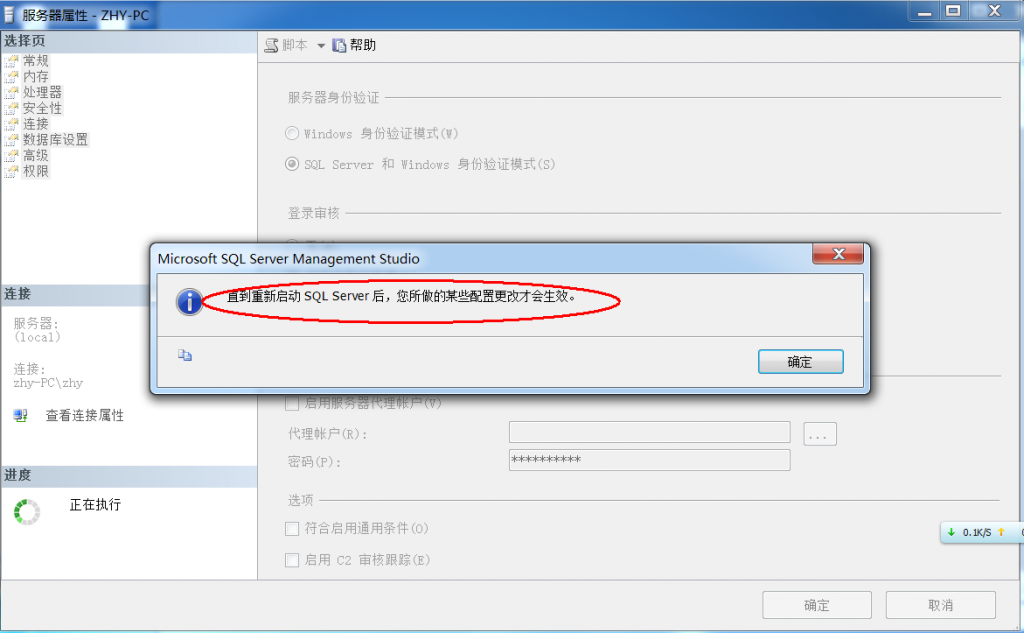 确定后,重新启动SQL Server