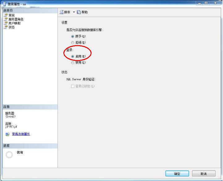 将右边的登录选择启用方式,这时候你就可以用sa登录名登录了!